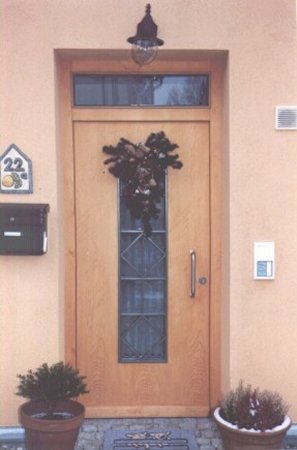 | Haustüre Fichte massiv Bleiverglasung mit farbigen Gläsern |