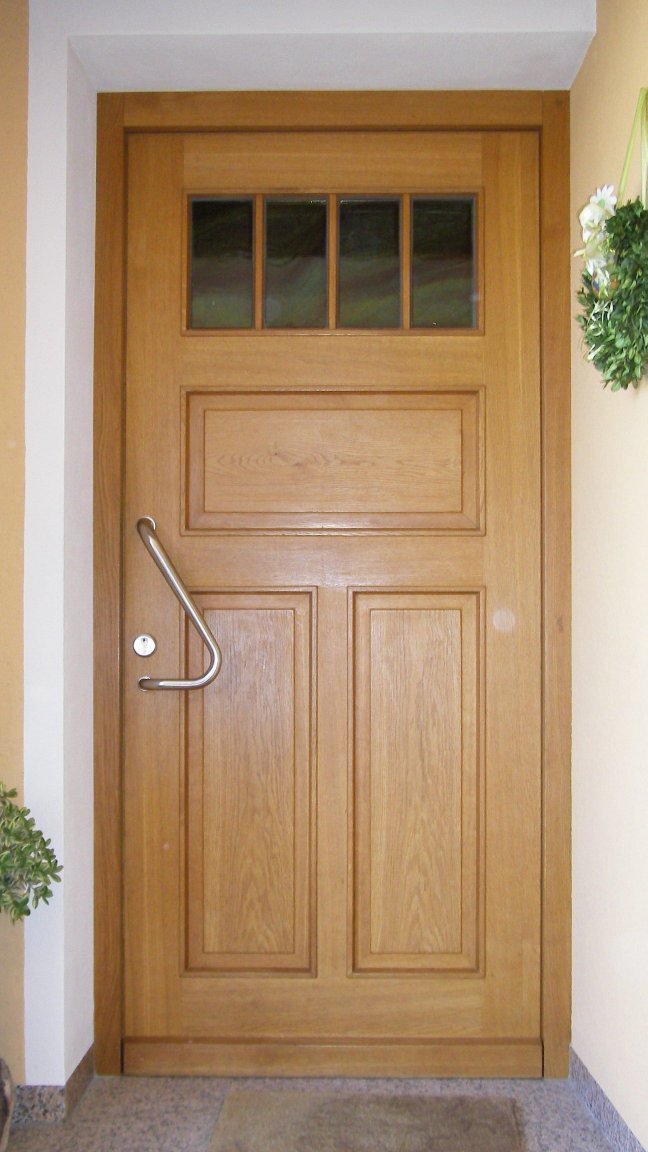 Haustüre mit traditioneller Rahmenbauweise mit echten Füllungen | Segmentbogen-Eingangselement mit Oberlichte |