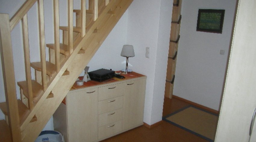 | Eingestemmte Wangentreppe in Ahorn | Handlaufdetail | Raumspartreppe in Fichte | den vorhandene Platz optimal nutzend |